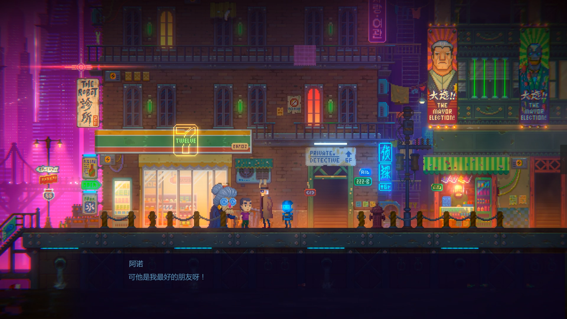 正因為有這麼多優秀的畫面元素,才組成了游戲中一幅幅精緻漂亮的畫面。甚至有人稱,《迷霧偵探》的畫面就是賽博朋克風格的《清明上河圖》,可謂是贊譽有加了。
