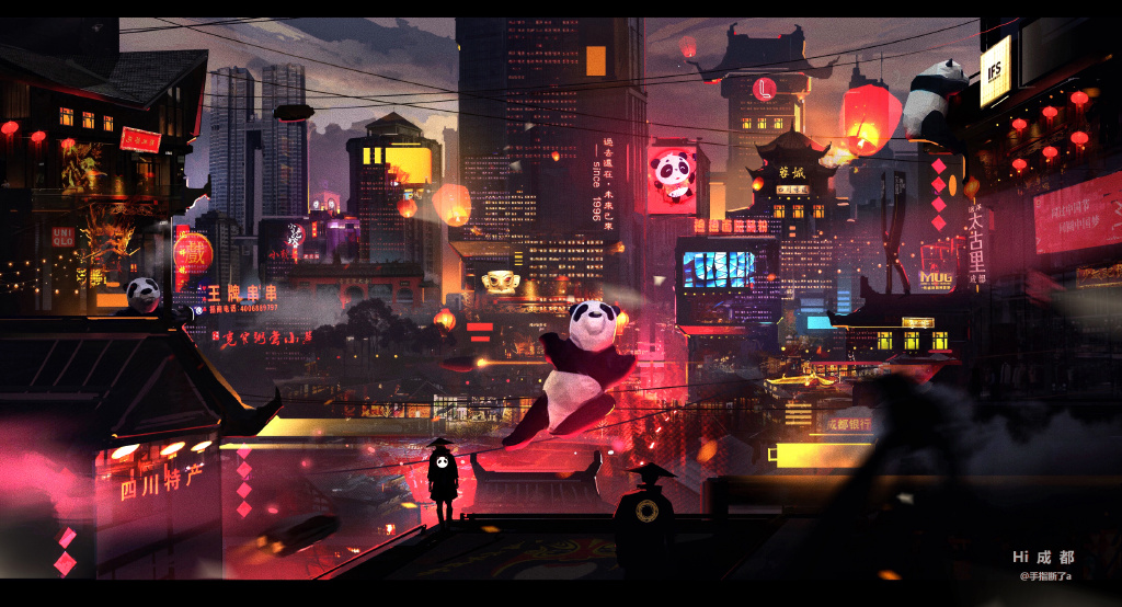 既然說到賽博朋克風格的作品,不得不提到我國的一位著名插畫設計師——【手指斷了a】大神,首先我們來欣賞一下他的幾幅作品。