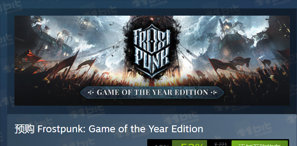 《冰汽時代/Frostpunk》是由11 bit studios製作、並於2018年4月24日發行的一款的以社會生存為題材的模擬策略類遊戲。對於11 bit studios相信一些喜歡遊玩生存類遊戲的玩家而言應該不會陌生,在2014年發售的以戰爭生存為題材的高分策略模擬遊戲《這是我的戰爭》就由11 bit studios發行,時至今日在商店頁面中擁有超過五萬條用戶好評、整體特別好評的評價水準。作為兩年前推出的《冰汽時代/Frostpunk》同樣不遜色,憑借出色的遊戲質量獲得眾多玩家好評,商店頁面中擁有超過四萬條用戶好評,後續應該還會逐漸上升。