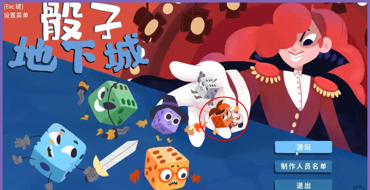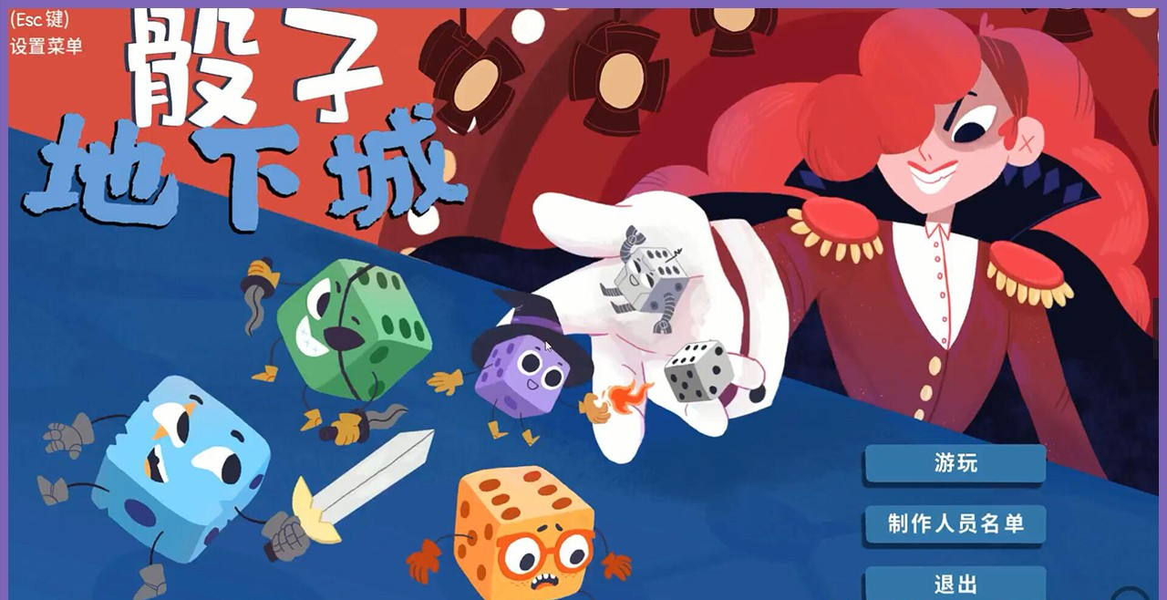 打開遊戲之後,一個充滿魔幻卡通色彩的主界面就映入了眼簾:一張巨大的藍色賭桌前,坐著一個紅發女人,手中往桌上投擲著六個骰子,臉上卻帶著凶神惡煞的笑容(如圖1-1)。這個紅發女人就是本作的反角——幸運女神。和其名字相反的是,她並不會給她手中的骰子們帶來幸運,而是讓它們在自己的「綜藝節目」中不斷淪陷、直至時間的盡頭。