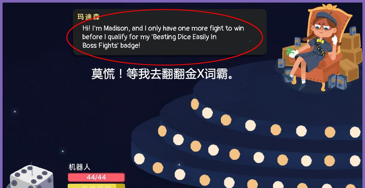 綜上所述,《骰子地下城》不僅秉持了Roguelike類卡牌遊戲的經典玩法,而且在其中加入了各色獨特的遊戲規則與遊戲角色,讓整個遊戲被初玩時呈現了巨大的吸引力;而遊戲中的細節則起到了對遊戲性極大的補充作用;最後讓我喜歡上它的原因,自然就是它在劇情中用黑色幽默諷刺了賭博本身,其立意令人敬服。但遊戲中各種BUG,特別是程序永久之後就會卡這一項,讓遊戲的體驗性遭到了一定程度的破壞。
