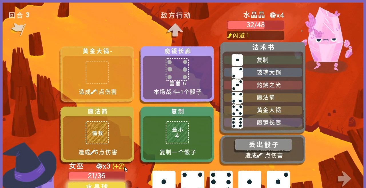 每次玩家遊玩遊戲之時,系統都會產生一個隨機的地下城。每個地下城都有六層地圖,前五層為普通關卡(如圖1-3),第六層是BOSS關卡。玩家需要通過操控自己的骰子角色通過重重關卡,打敗BOSS方可通關。