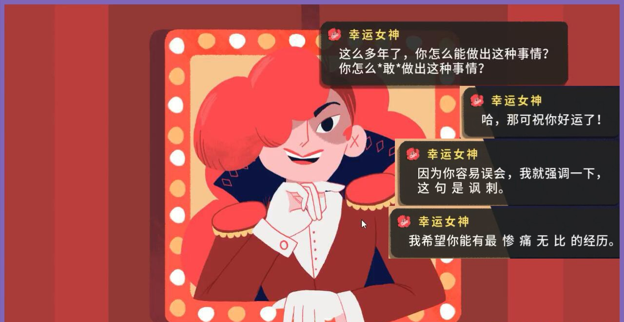 遊戲所表達的核心思想是:幸運女神不僅不會眷顧你,而且她就是把你帶進無限地獄的罪魁禍首。
