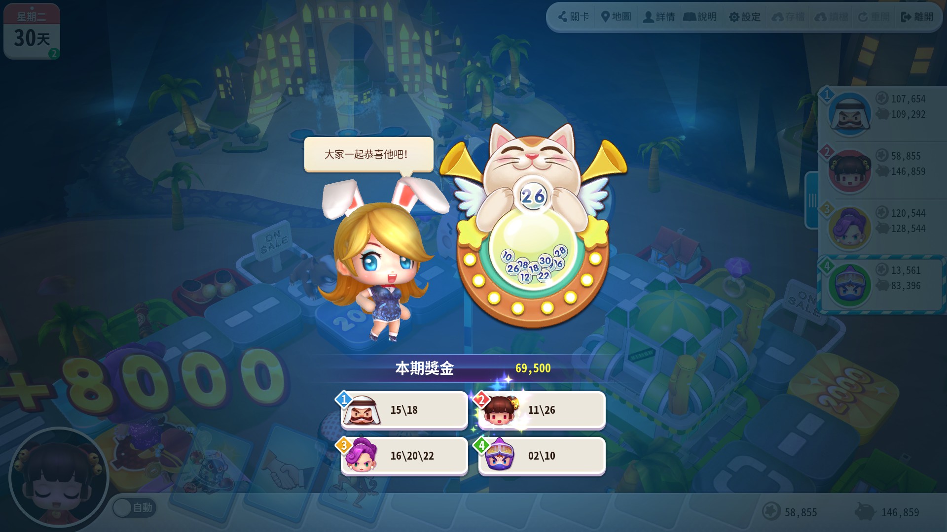 在暴富……不對,在任意組隊模式中,隊友之間可以相互加蓋對方的地產,也可以雙劍合璧集火落單的敵方;當敵方困住友方時還可以及時伸出援手解圍。親身體驗過後,這個模式給我一種「冤冤相報何時了」的感受……,隊友組隊,火力加倍。想必各位玩家在游戲中深有體會。而且獲得卡片大部分是靠運氣的事情,多一個人總歸是多一分力的,稍有不慎就會被多卡大佬制裁。順便一提,很多玩家都反映《大富翁10》的地圖偏小,這只是看起來偏小而已……中等回合的動輒就能玩2~3個小時。
