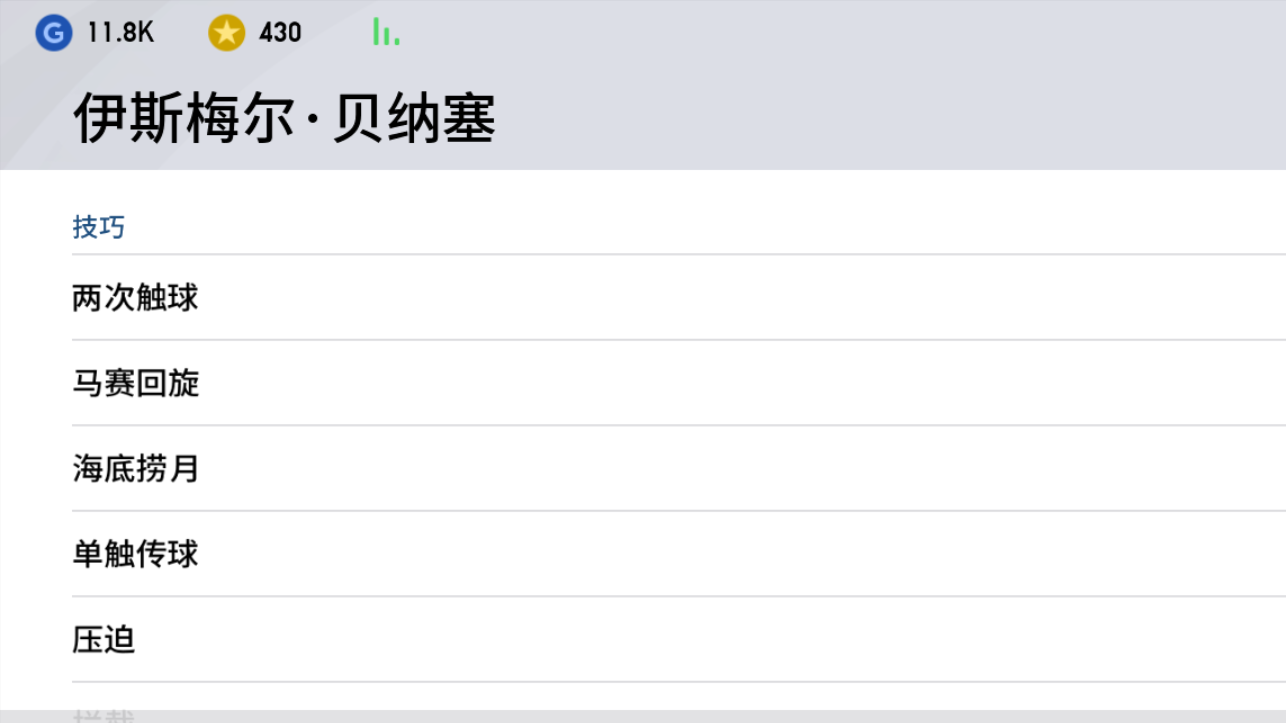 然而試驗多次,卻始終未能再現這一經典動作。這不免讓我有些氣餒,但隨後在網上查閱到一則消息讓我眼前一亮。原來想要在《實況足球2021》中完成「馬賽迴旋」還需要另外一個附加條件——球員技能中必須有「馬賽迴旋」才可以做出這一動作。沒有這一技能,球員只能做出「拉球變向」,難怪此前嘗試均以失敗告終。