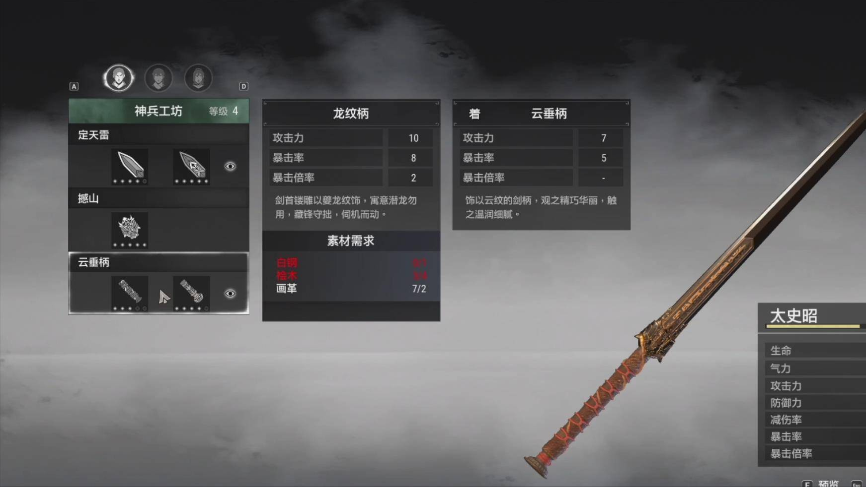 而上述不管是「天書」本身升級又或是武器、煉化物品、製造防具和飾品,都需要材料收集。在《軒轅劍柒》中獲得材料的途徑無非有三種:開寶箱、通過各地商人購買以及刷怪。毫無疑問,最後一種方法的收益最大,而天書技能「收妖」在此時就能夠派上用場。通過釋放技能,玩家可以收取正在與之戰鬥的敵方NPC並獲取材料。而「收妖」成功與否,同《軒轅劍:天之痕》中機制設定有些類似,血量越少收取成功率則越大,所以在收妖期間玩家還要想辦法盡量降低敵方血量。