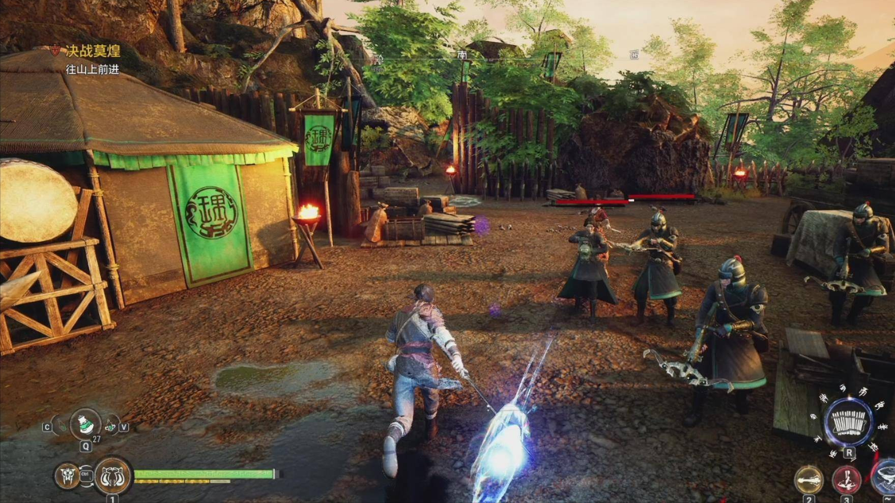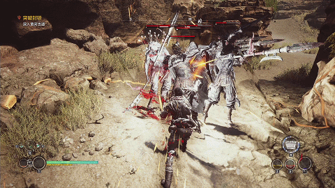 遊戲除了最基本的平A連打和使用形態「重攻擊」與「技能」外,還有格擋與彈反。對於這兩個辭彙玩家已經不會感到陌生,在《軒轅劍柒》中也有著此類設定,「完美格擋」可以抓住敵人空隙進行攻擊,而一些遠程攻擊則可以使用「彈反」將其打回去。