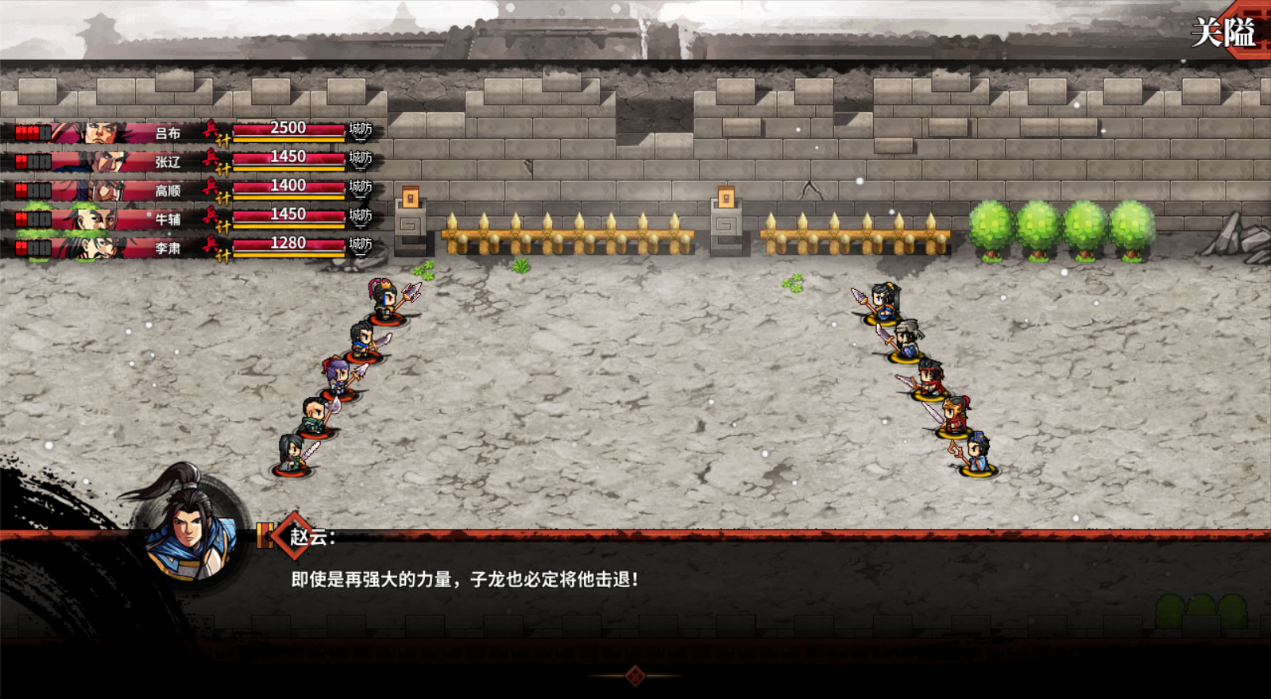 最刺激的是接下來,斬了華雄之後,呂布出現,然後上演三英戰呂布,一切似乎都很正常,而在一般的三國游戲中這裡會出現劇情殺,然後撤退尋找破敵之策。正當我準備迎接失敗的時候,一個本不該出現的人出現了,常山趙子龍,其在三國游戲中的設定之變態也不用我多說,以致於不止一次的有人討論,這個男人跟被稱為武魂的呂布到底誰強。而年少的我多少也會幻想過這個場景,三英戰呂布,如果當時趙雲在場又會是怎麼一副光景,有過這種想法的人應該也不止我一個,而他們居然真的這麼去做了!!!雖然這劇情已經屬於魔改了,但是突然讓人熱血沸騰啊!