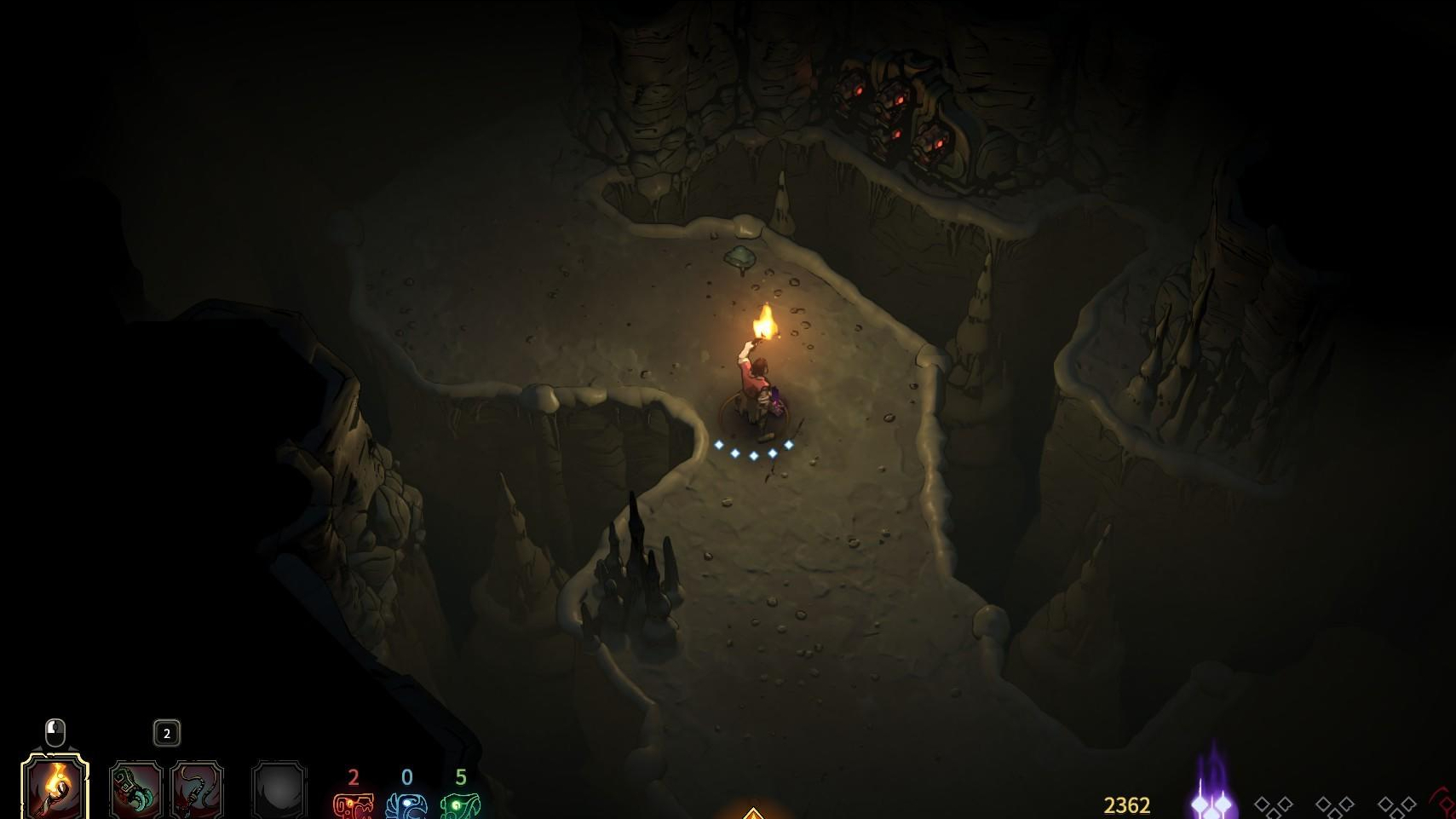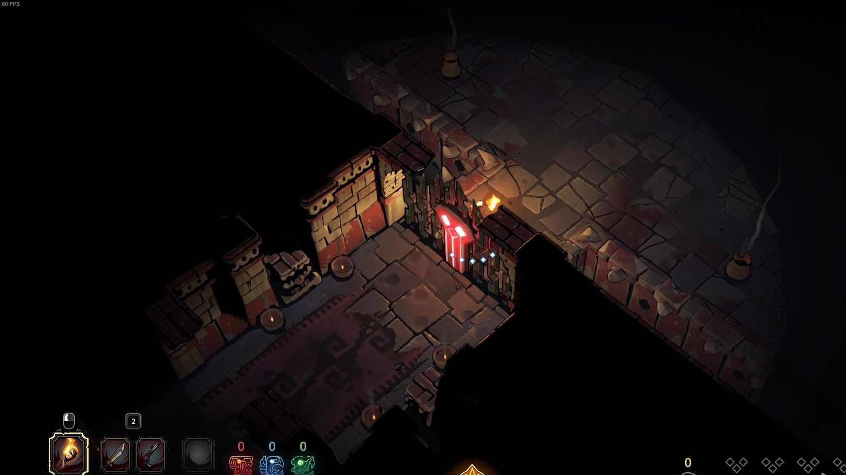 在這款遊戲中,地圖中多數環境都是處於黑暗之中,玩家需要手握火把才能照亮周圍的環境,玩家在手握火把的時候無法使用武器,但這是一款動作佔主導的遊戲,也就意味著玩家為了增強自身的能力可以放棄相對無用的資源火把,它除了照亮周圍環境以供玩家躲避陷阱之外毫無用處,因此放棄火把就成為玩家的通常選擇(尤其是你熟悉了陷阱機制之後,會發現陷阱很好躲避,火把的作用並不大),從而導致玩家在房間探索的時候難以清晰地看到遊戲地圖和周圍環境的畫面。遊戲中可以存在黑暗環境,但如果在整個遊戲中都保持這種環境並不是動作遊戲的良好選擇,畢竟它不是恐怖遊戲。
