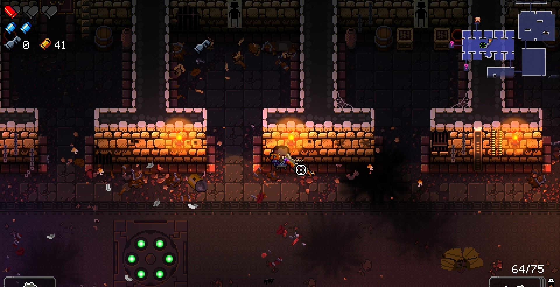 首先是資源池問題;本作設有四名角色,每名角色都配有基礎槍械,玩家從地牢入口商人處購買的武器無法直接使用,只會隨機刷新在地牢中的商人處與寶藏箱中。在探索過程時,擊殺敵人掉落的子彈貨幣實在是過少,考慮到並不是所有玩家都有高操作水平,遊玩時免不了受傷掉血,而地牢中的回血手段只有商人處購買道具與擊殺敵人獲得。由於隨機性的存在,商人處不總是會提供回血道具購買,所以很多手殘玩家可能在將整片地牢探索過後,最終靠著一顆或半顆血量去與Boss戰斗,結果當然是連第一層地牢都打不過。