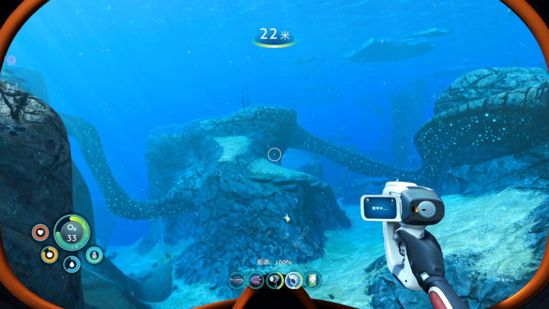 作為《深海迷航》故事的延伸,本作毫不掩飾自己對前作在既視感與機制層面的復刻。拋開理所應當具備的視覺效果升級,無論是標準的球形逃生艙,還是分布在淺海區域,五彩斑斕的動植物,抑或是幾乎一模一樣的系統功能——《零度之下》乍一眼看上去與前作幾乎如出一轍。而在筆者反復對比之後,也發現兩作在基礎的「生存建造」體驗這塊,確實沒有太大的差別。這意味著:如果你是從《深海迷航》一路摸爬滾打而來的老潛水員,快速在《零度之下》中找准方向或許並不是什麼難事。