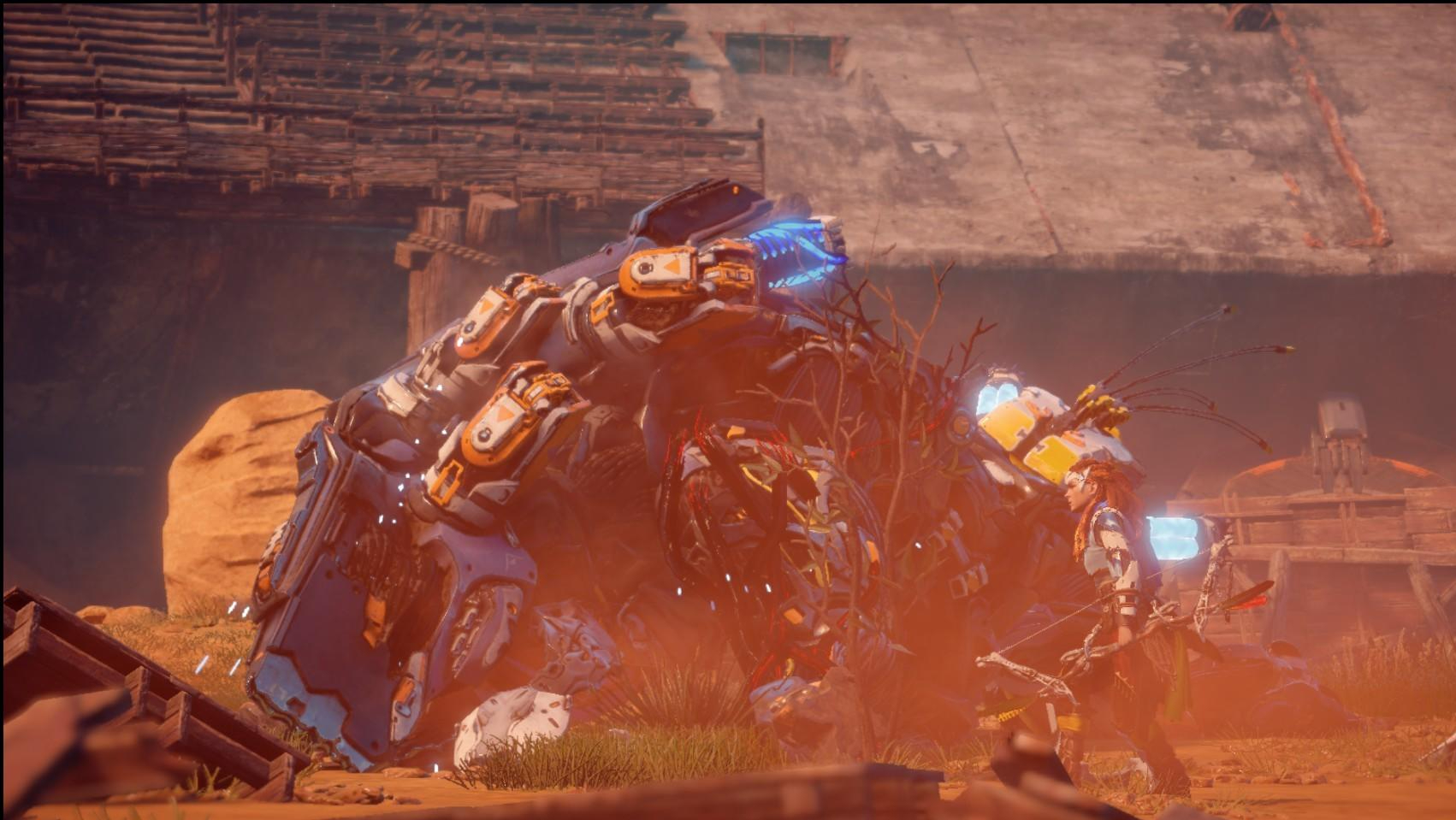 那麼作為本篇我們所要談論的《地平線:零之曙光》,則是採取了「機械智能覺醒」的世界觀設定,舊文明已經淪落,人類稀少,人們崇拜機械神明,一片蠻荒。有人傾盡一生去追尋神明滅亡的答案,有的被上古遺留的黑暗所誘導淪為惡魔的爪牙。而年輕的姑娘埃洛伊為了探尋自己神秘的出生背景和舊時代人類滅亡的真正原因,她開啟了自己的冒險,這個世界遍布的巨大的智能機械獸,舊日人類的科技遺跡被繁茂的植被所掩蓋。但黑暗處愚昧的日蝕族卻在幫助著哈迪斯實現一場即將重演的人類滅亡計劃……(不劇透)