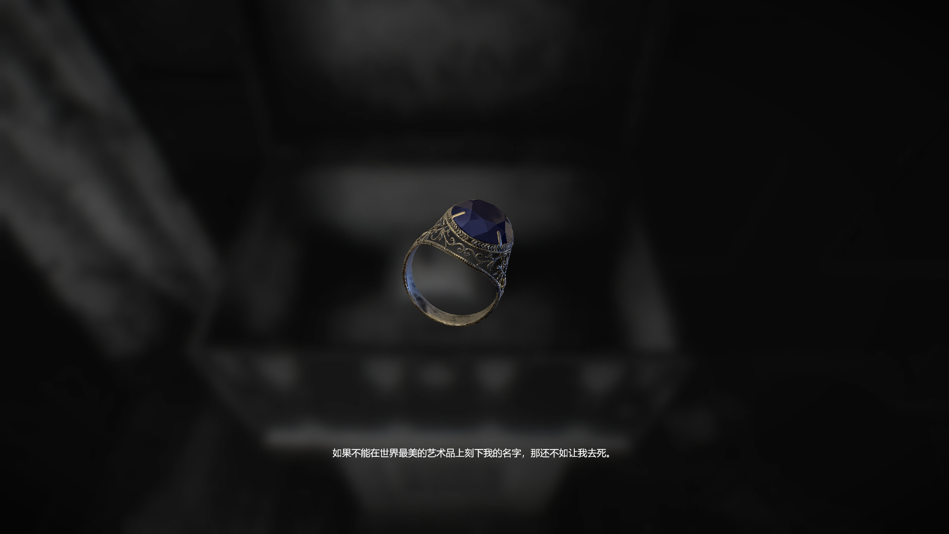 通過遊戲我們不難得出,主角是一位肢體略有殘障(通過一深一淺的腳步聲得出)的執著於追求精湛作品的畫家。他對藝術的執念讓他的一些思維方式和行為舉止變得怪異,也讓原本平靜的三口之家被一場大火摧毀的得更加支離破碎。這種「瘋狂畫家「的形象,在文學作品也並不少見,《月亮與六便士》(毛姆著)的思特里克蘭德和《地獄變》(芥川龍之介著)中的良秀就是這一形象的典型代表。