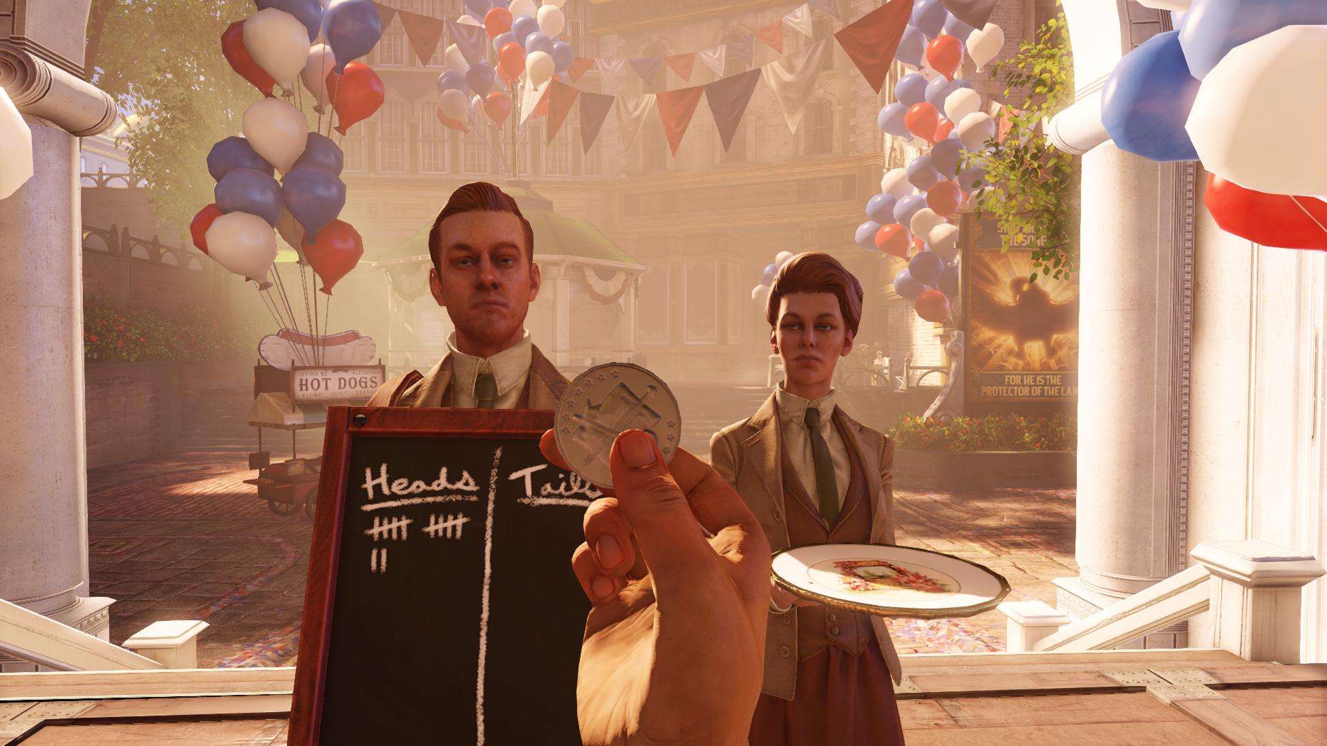 布克之所以一開始沒想起是因為男女路特斯帶他到康姆斯托克的時空時候產生了一部分的記憶缺失導致的,他腦中的欠債其實一直是他潛意識裡面對女兒的虧欠。最後伊麗莎白把布克帶到洗禮的地方,出現了好幾個伊麗莎白把同意洗禮的布克給淹死了,讓後鋼琴聲響起每當一個音符想起,有一個伊麗莎白消失。最後的畫面是布克醒來,看去嬰兒車,並沒有看到裡面是否有伊麗莎白,游戲結束。