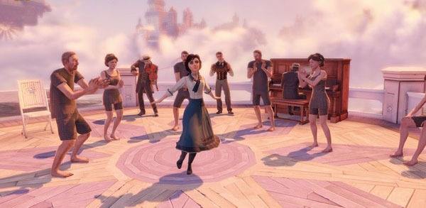 布克願意帶伊麗莎白出去,給予她從來沒有過的自由。在與帶伊麗莎白逃離守塔的機械巨鷹後,伊麗莎白第一次看到高塔外的世界,也許和路邊人一起跳舞時是她這輩子最開心的時光了吧。