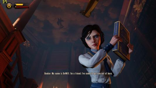 在經歷了一系列困難後,布克在一個天使形狀的高塔裡面找到了伊麗莎白。一個從小就被關在這裡除了書籍沒人陪伴的小女孩。令人驚奇的是伊麗莎白有撕裂時空的能力,能夠產生時空裂縫!只是目前在高塔內使用起來很不穩定,同時伊麗莎白非常渴望去一次巴黎。浪漫的女孩子都喜歡巴黎?