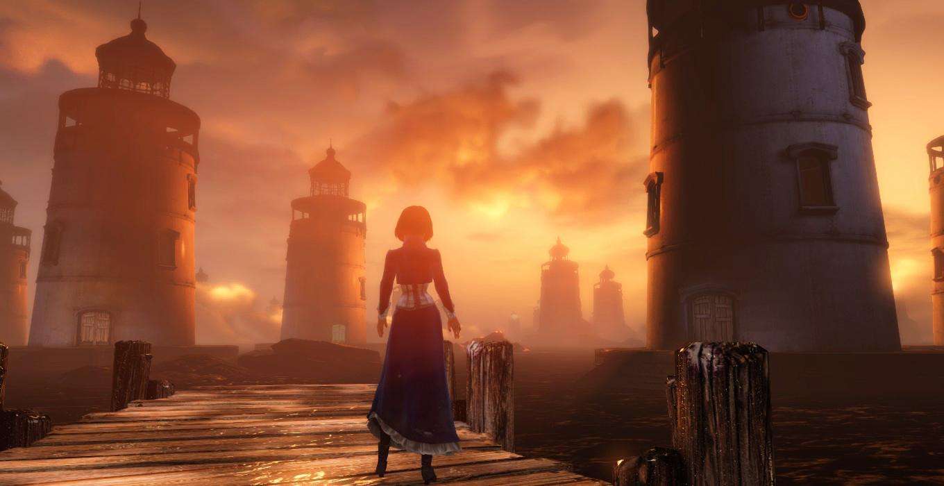 伊麗莎白再次帶布克回到燈塔旁。無限的時空裡面有無限個燈塔,無限個燈塔旁又無數個一臉懵逼的布克跟在無數個伊麗莎白後面茫然的看著周圍。