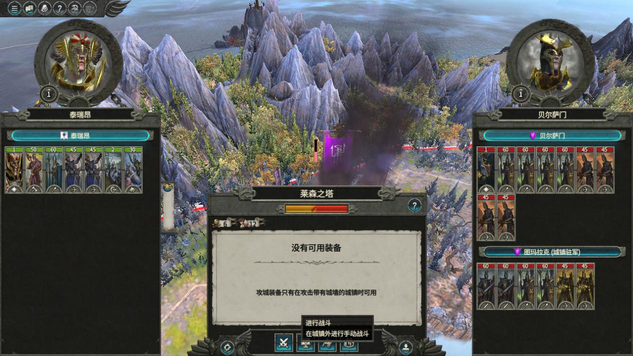 當玩家的軍隊和敵人展開戰斗時,就會彈出一個軍力對比界面,這個界面會展示這場戰斗中會出現的所有單位,包括兩邊的援軍(當其他軍隊在交戰軍隊的增援範圍之內時會以援軍的形式出現)。在點選了進行戰斗按鈕後,就會在新生成的局部戰爭地圖中進行一場即時戰術遊戲。