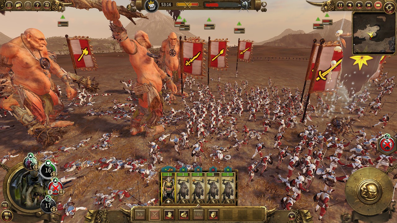 魔幻背景下的宏偉戰爭由於歷史題材的局限性,全面戰爭系列的舊作品經常容易出現兵種同質化的特點。不僅是同一作品裡不同派系的相同類型兵種非常接近,甚至不同作品裡的相同類型兵種也相當接近。幕府將軍、中世紀、羅馬、中世紀2、幕府將軍2、羅馬2、阿提拉,在戰錘誕生以前,全面戰爭系列整整出了七款歷史題材冷兵器時代戰爭遊戲。雖然每一代的機制都各不相同,玩起來都可以稱之為佳作,但是如果只從兵種上來講,幾乎可以說是換皮遊戲了。