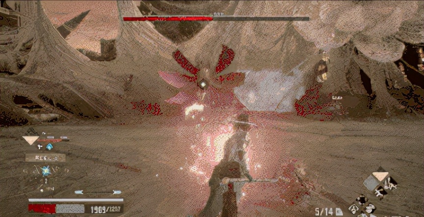 本作雖然融入了不少新元素,但也有著傳統類魂遊戲都具備的設定—彈反和背刺,但該設定在戰斗中的表現卻意外的迷,背刺主要體現在模糊的判定機制上,玩家在戰斗中經常會出現繞到背後卻不能施展背刺以及在側面的時候莫名就施展了背刺。彈反則主要體現在部分牙裝的超長前搖,而且有些血碼還會對牙裝的選擇有限制,這樣就使得玩家在應對不同敵人更換不同戰術的同時,還要熟悉新的彈反時機。