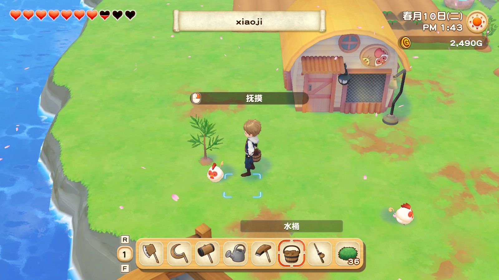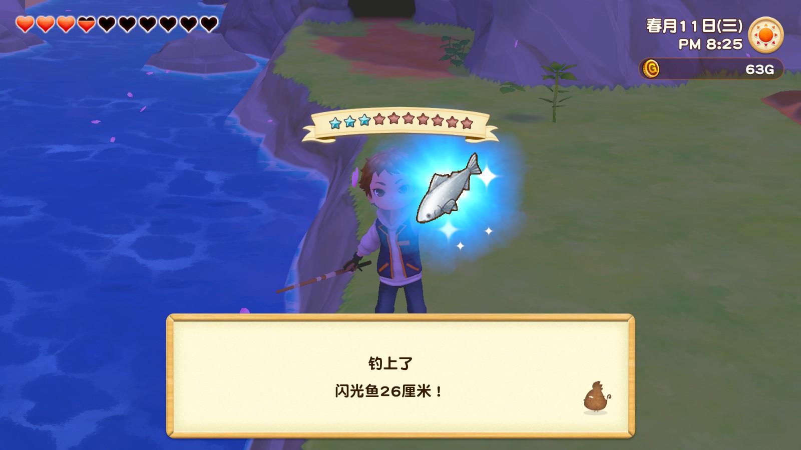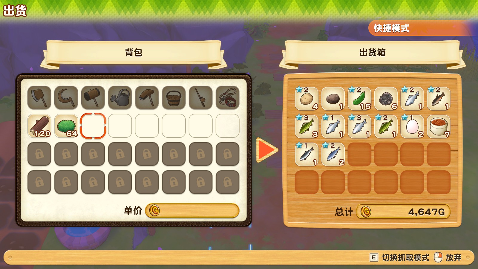 放牧也是類似的體驗,從最開始修繕雞舍、馴服第一隻小雞開始,慢慢發展自己的養殖業。獲得的果蔬糧食以及和各種農副產品我們都可以放到出貨箱里,每天結束後就會賣出去變成金幣,成為我們擴大再生產的資金。釣魚是前期獲得水產品的重要途徑,而且很有操作感,很上頭,我感覺釣魚才是這款遊戲最好玩的地方,甚至都不想建造捕魚的設施了(雖然這兩者並不矛盾),一心只想研究釣魚。雖然牧場和農田也要每天打理,但是成就感滿滿,而且很容易上手,也沒有什麼特別硬核或者懲罰玩家的機制,如果不想肝的話,是完全可以當成養老遊戲來玩的;如果想當一個上進的牧場主,那也沒有任何問題,依靠自己的辛勤勞作和合理的發展管理成為牧場大亨,那也是非常爽的一件事。