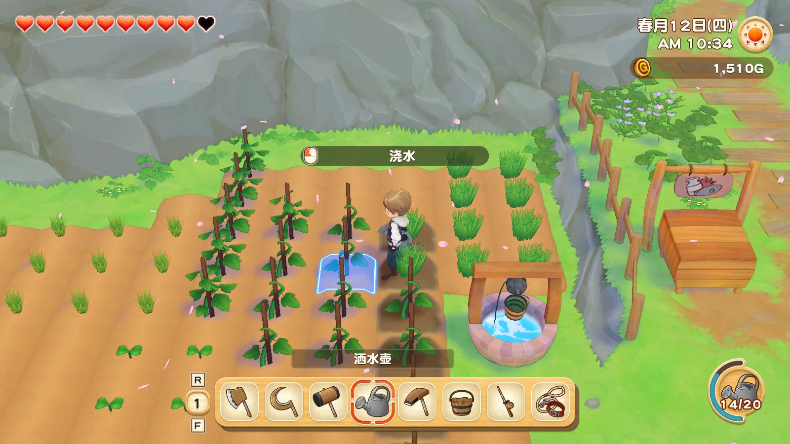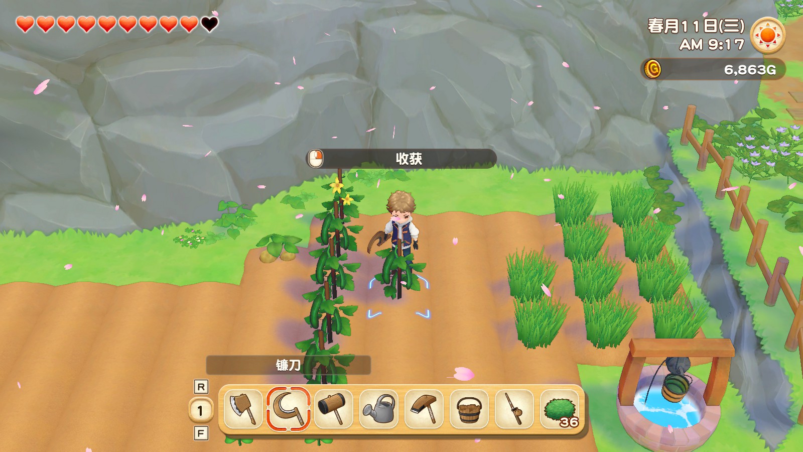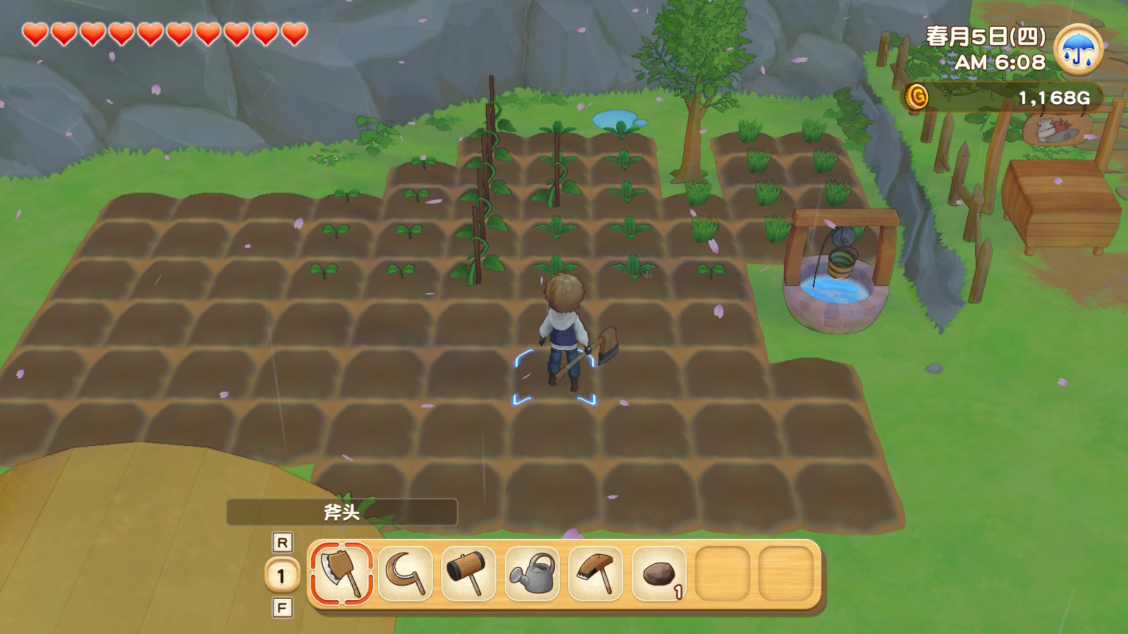 《牧場物語:橄欖鎮與希望的大地》作為一款內容豐富的種田類遊戲,自然會在這方面有著花樣繁多的玩法。我們在整理好土地之後,就是播種然後每天澆水了,等待農作物成熟的過程很有樂趣。種田的過程也是我們生產力發展的過程,因為在一開始我們只能用便宜的種子種一些經濟價值不高的作物,而且所有工作都要一點點地自己操作,但到了後面我們有了資金積累之後就可以種一些價格貴但是產出價值更高的經濟作物,澆水也可以使用灑水器,這種成長的感覺是很棒的。