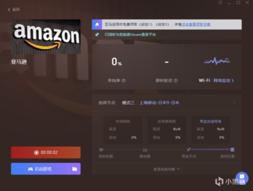 登錄亞馬遜賬號的時候,需要用小黑盒加速器加速亞馬遜北美節點,這是必要條件哦,文章末尾有激活碼口令可以使用: