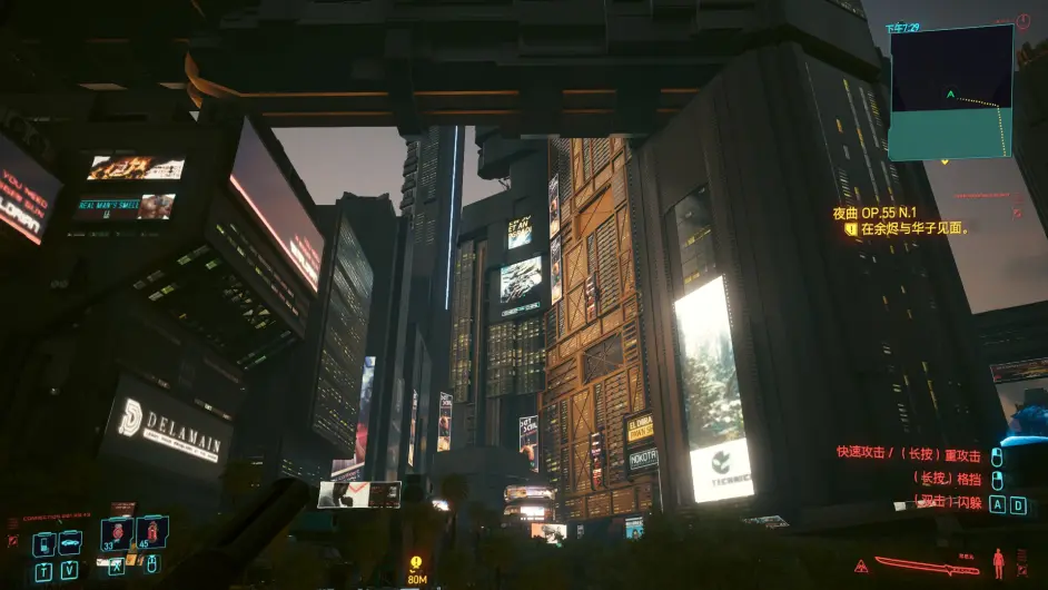 遊戲的中文配音也十分地道,上次見到這樣的中文配音還是《無主之地3》,但2077的中配專業程度真的很高,甚至日本角色說著一口帶有日本口音的中文,還有廣播腔的新聞播報等,這些都十分完美地構建了充滿中文的賽博朋克世界,為以中文為母語的玩家提高了遊戲體驗。這點也是遊戲內非常值得稱讚的地方。