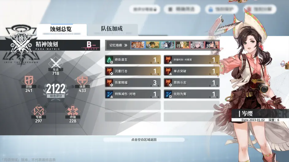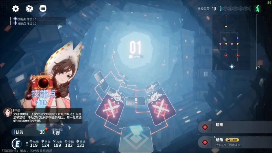 蝕刻的獲取途徑是「迴廊漫巡」,這就是之前提到過但沒有展開介紹的 Roguelike 元素。玩家需要搭配隊伍,在一個樹狀地圖進行探索,選擇分支路線、觸發事件、獲取屬性數值或技能、擊敗攔路敵人,爭取抵達地圖的最深處並擊敗最終 BOSS。