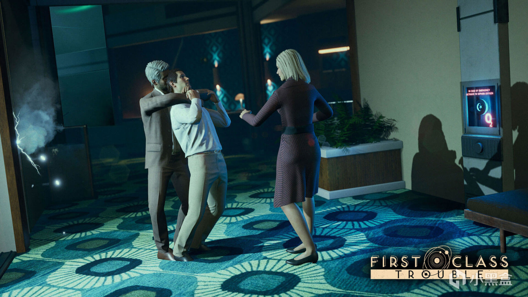 《First Class Trouble》是一款團體合作遊戲,玩家們為了生存,必須互相合作,同時還要對付其他人。遊戲的目標是關閉一艘奢侈宇宙游輪內的致命人工智慧。但有些玩家是間諜,利用看起來像人類的殺手仿生人准備背叛其他玩家。玩家們將在這款由 Invisible Walls 開發的多人社會欺騙遊戲中擔任 ISS Alithea 的乘客角色。這艘游輪的人工智慧網路中心,C.A.I.N. 發生了異常並開始排出船內的氧氣。乘客們得使用近距離聊天,進行合作才能達成目標,從而抵達 C.A.I.N. 來贏得遊戲。與此同時,仿生人(Personoids)混跡在乘客當中,他們是看起來和人類別無二致的機械僕人,正准備報復乘客們。仿生人(Personoids)們得欺騙乘客們,從而消滅他們,或繼續隱瞞到最後才能贏得遊戲。