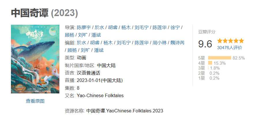 IT之家了解到,《中國奇譚》自 1 月 1 日播出以來,在豆瓣獲得了超三萬人評價,評分高達 9.6 分。