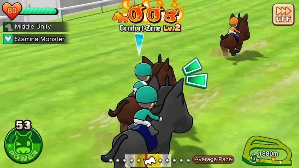 就如同一般賽馬,一旦進入最後衝刺階段就可以全力以赴,玩家須確保自己的馬別跟他人相撞。