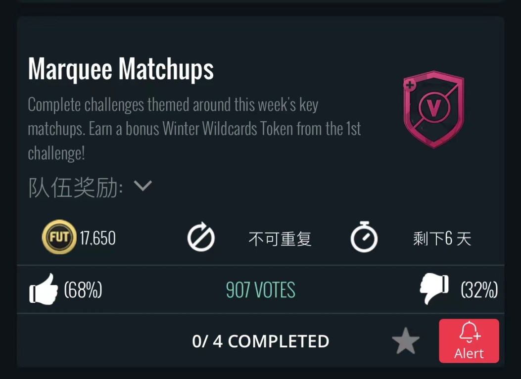 第一項挑戰主題是荷甲特溫特VS埃曼,要求必須放上一張兩隊的球員,現在市場上已經1w金幣一張了。這波跟上次南安普頓差不多,只不過這次有個代幣,相當於明碼標價一萬金幣買個代幣,考慮到一共26張代幣,如果之前買了那個50000的卡包的話就不用做這個了,有這兩支球隊的可交易卡也趕緊頂價掛上去吧。