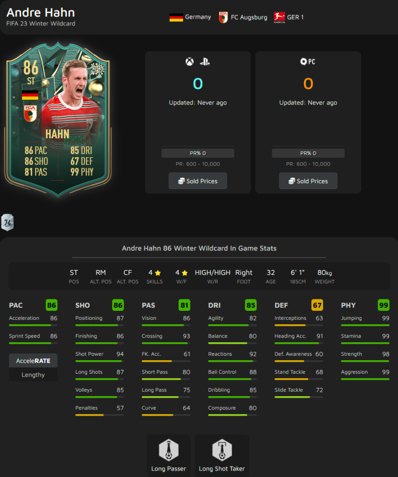 身體99,四花四逆,不過還是個支點中鋒,對於德甲套有一定的性價比。