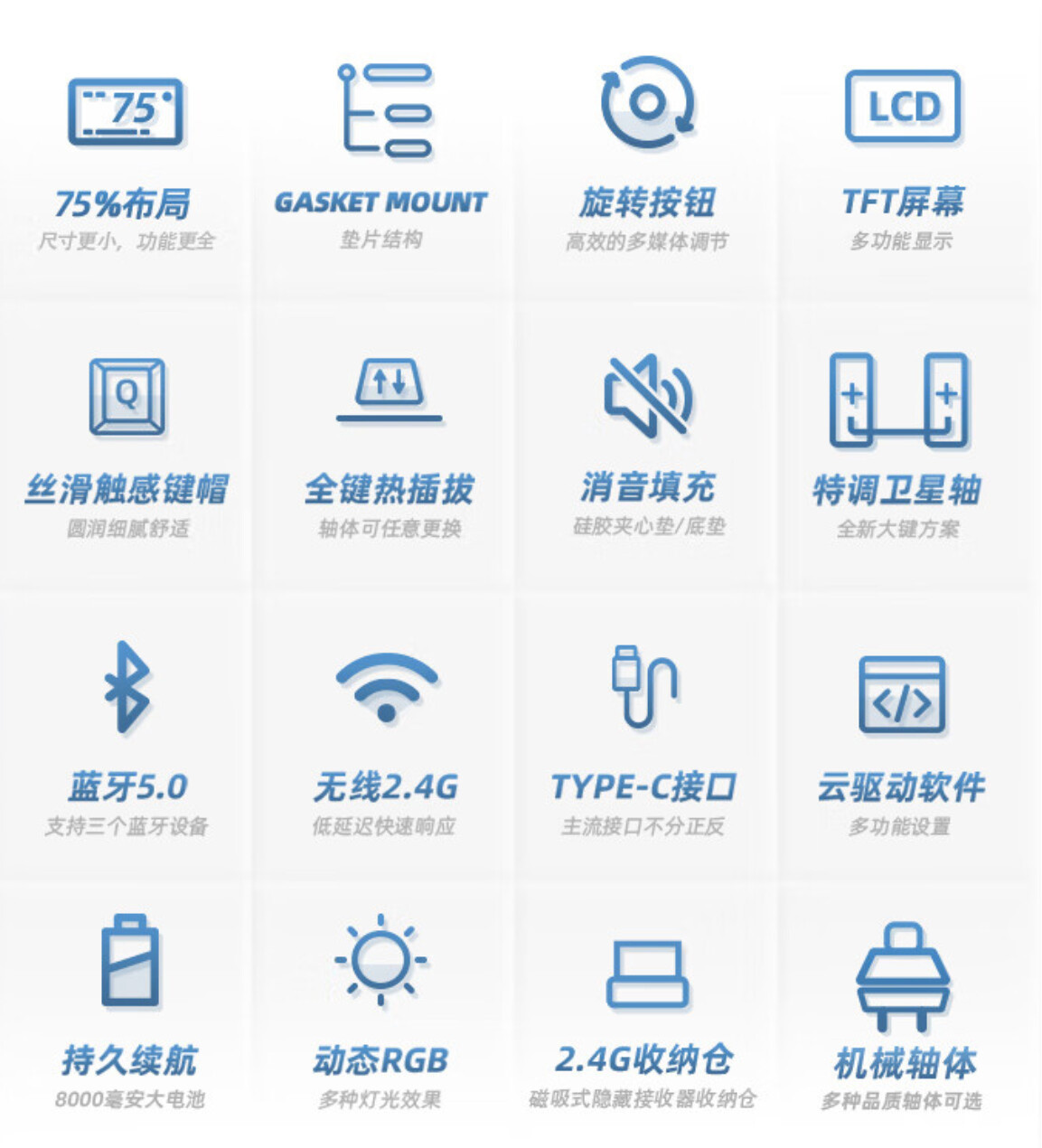 不知名 旋鈕75鍵盤 無線三模 底部有2.4g接收器