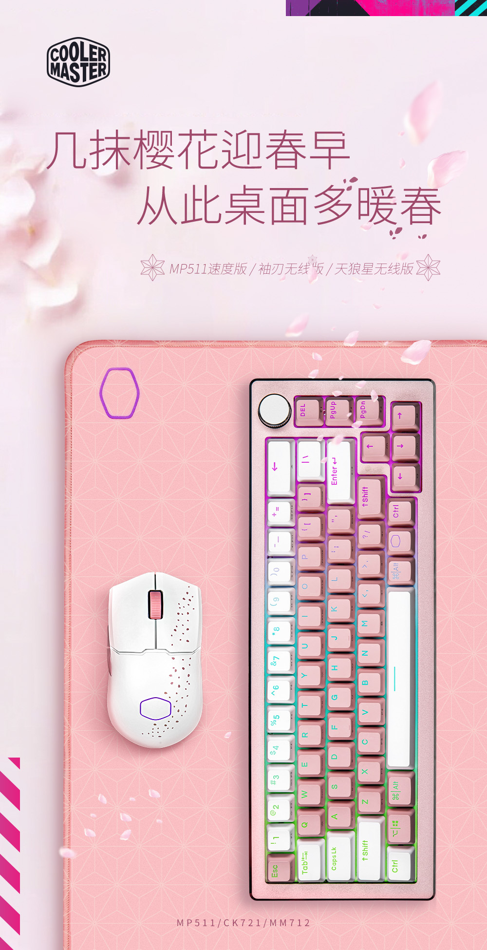 【預計下周上市】酷冷至尊櫻花限定版:天狼星MM712無線滑鼠、袖刃CK721無線鍵盤、MP511滑鼠墊