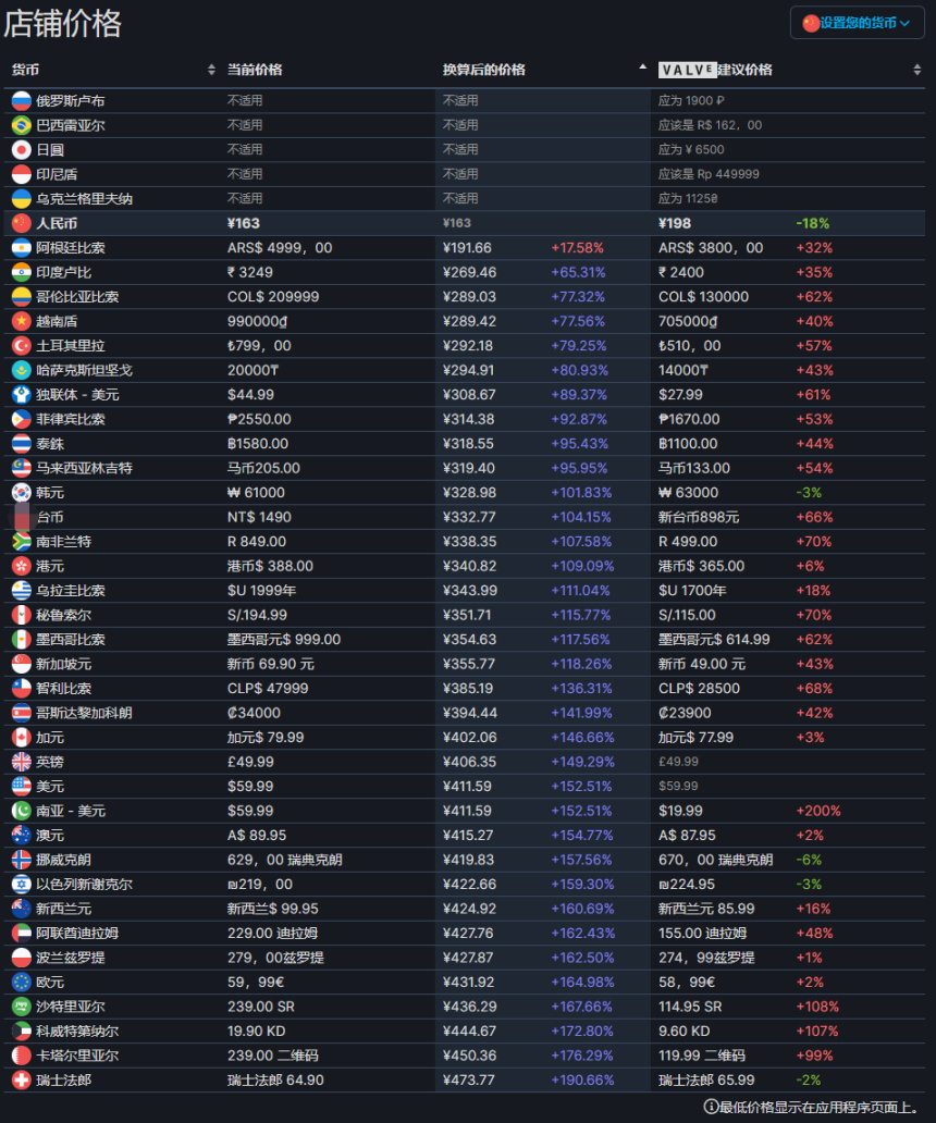 阿根廷區:ARS$ 2999(約¥114.73)↗ARS$ 4999(約¥191.66)。