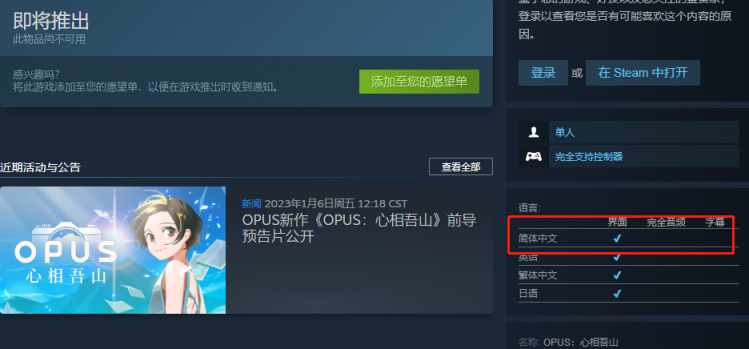 國內獨立遊戲開發商 SIGONO Inc. 1 月 6 日宣布了新作品《OPUS:心相吾山》,這是《OPUS:龍脈常歌》的精神並列新作,被描述衛伊迪斯·芬奇與新海誠電影的融合。
