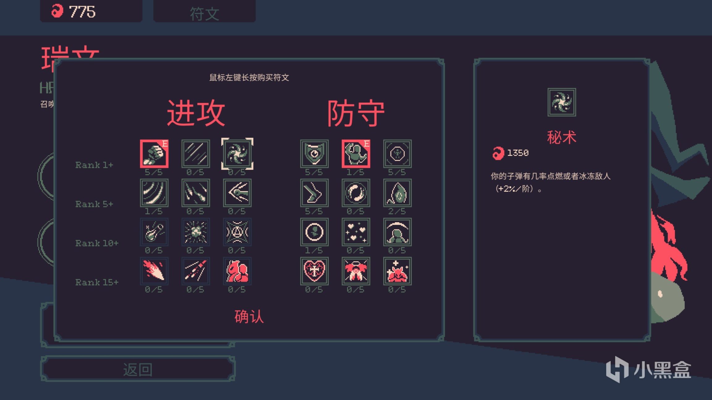 然後當你每次退出關卡時都會獲得一些遊戲內的貨幣,可以用來解鎖角色、槍械。或是用於升級符文。符文能夠加強角色的初始能力,有攻擊和防守兩條路線,要按照順序往下升級,越到後面能力越強,所需求的點數也就越多。也許你剛開始玩這遊戲的時候會覺得很困難,有點過不去了,但當你把這些符文全升滿時,這就變成了一款無雙割草遊戲了,純爽游,按住滑鼠左鍵享受爆炸與美就行了。