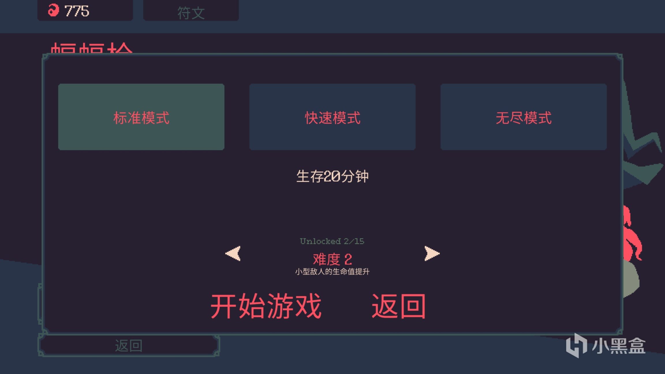 遊戲共有15大難度可以選擇,當你通過一種難度才能解鎖下一難度。每一種難度下,敵人都會增加不同的增益。我在剛開始玩這遊戲的時候我覺得每一分鍾都是漫長的,特別是獲得了遊戲內那個」3分鍾過後生成一條龍的蛋「。我從來沒有覺得三分鍾會這麼漫長,我都在和一堆怪物兜了一大個圈子了,往右上角一看,居然才過去一分鍾。我還指望這條龍幫我大殺四方能,結果經常都是沒等它孵化出來我就沒了。然後我就又忍不住繼續開一把,就想看這龍到底有多厲害,這何嘗不算是一種時間殺手呢。