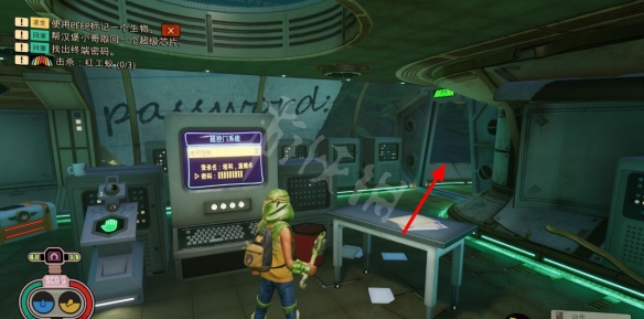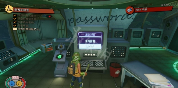 10、回到實驗室入口處使用密碼登錄終端。在身後的房間中獲得樹籬超級晶元。