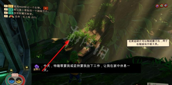 11、返回橡樹實驗室後將晶元交給漢堡小哥,得知我們還有池塘實驗室、霧靄區實驗室和黑螞蟻實驗室中的三個晶元需要收集。