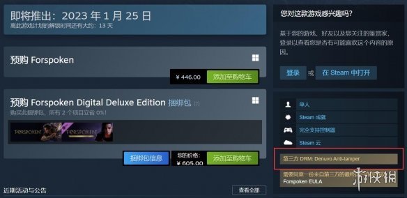 Square Enix在它近期發售的絕大多數PC遊戲中都加入了D加密防盜版技術。所以,《Forspoken》作為SE社全力打造的一款3A大作,加入D加密並不令人意外。但稍顯遺憾的是,SE社尚未公布這款遊戲的PC配置要求。