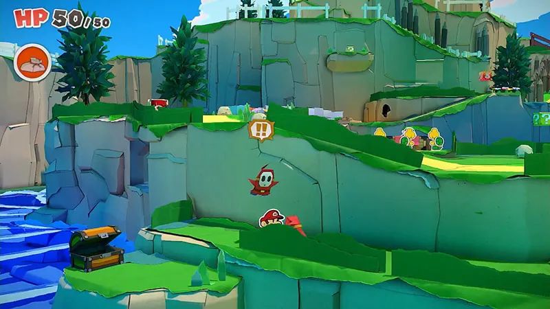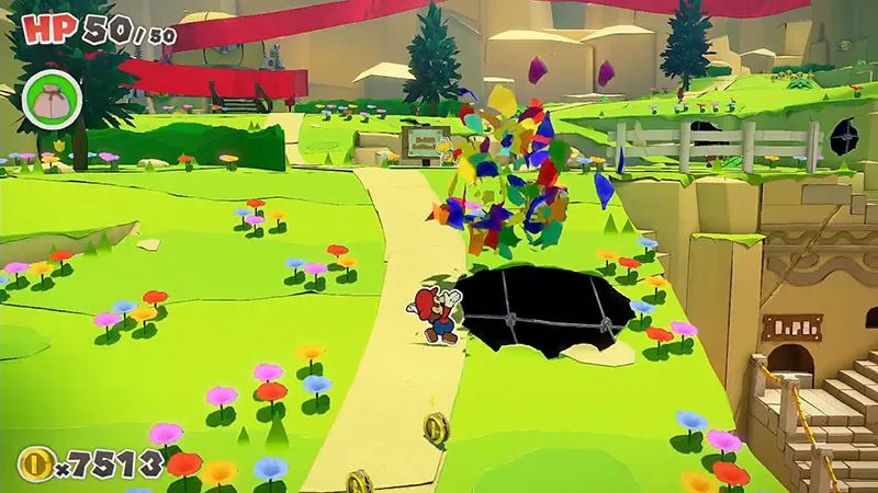 遊戲在探索機制上另一個關鍵要素是彩紙片,這應該是Wii U《紙片馬里奧:色彩飛濺》噴漆機制的簡化版。