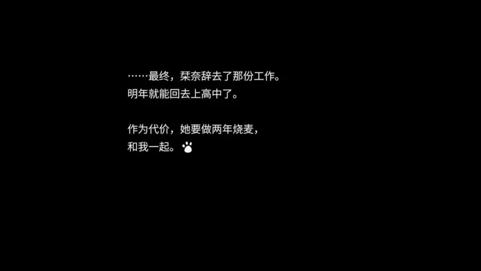 現實很殘酷,卻也為他們留足了餘地。片智岡這次對筆下的兩位主角還是相當溫柔的,沒有下狠手一刀再刀,他無意摧殘他們的目標和夢想,畢竟失去鬥志對這兩個年輕人而言也太過殘忍了。硬要說的話,DLC《和平默示錄》中梁和可欣的處境更加糟糕,他們遊走於更骯臟、更危險的勾當,鋌而走險卻別無選擇。