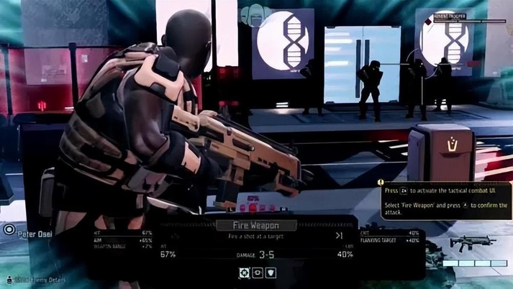 每次戰斗可以派出3名士兵,使用槍械作戰。掩體和隱秘非常重要,每次行動都會給出命中幾率,在掩體後面會大大提升存活幾率。士兵們有各種能力,有的能夠遠程狙擊,有的能夠破壞物品,有的能夠黑入設施,靈活配合方能獲得勝利。