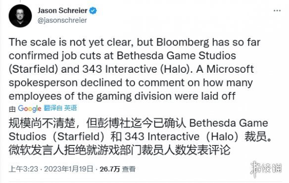 彭博社記者Jason Schreier今日表示,他們已經確認微軟旗下的B社和343工作室將會裁員,其中343工作室的《光環》團隊被大量裁員,裁員後還將重組。
