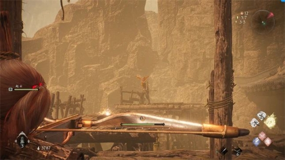 這次媒體試玩版仍舊從一片黃沙之中開始,貼圖精度和場景素材肉眼可見提升,FPS 優先模式下沒有出現上次 Demo 里跑起來就模糊的現象。擊敗幾個雜兵後名將趙雲出場,隨後我們將正式進入一個村莊和要塞雜糅的地圖。