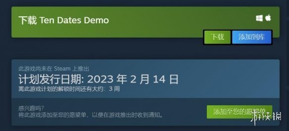 互動式浪漫喜劇游戲《五個約會》續作《十個約會》在今天公布了發售日期,將於情人節2月14題推出,可惜的是游戲暫不支持中文,目前游戲在Steam上還推出了免費Demo感興趣的玩家可以點擊此處前往查看~