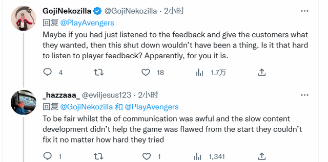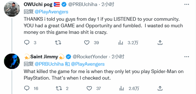 在官方推特的評論區中,不少玩家表示這款遊戲有著巨大的潛力,但是高昂且頻繁的微交易內容、PS平台獨占角色等等都最終讓這款遊戲變成一款「Dead Game」。